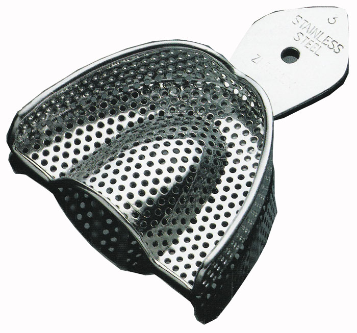 Perforeret rustfri stål aftryksske med retentionskant Overkæbe, medium