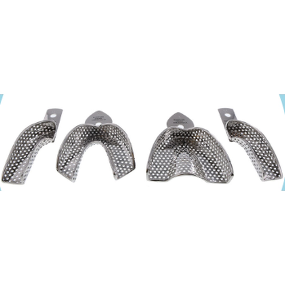 Autoklaverbar aftryksske i korrosionsbestandigt, rustfrit stål, med retentionskant, der holder aftryksmaterialet på plads i skeen. Perforeret, Upper S, til overkæben, small.