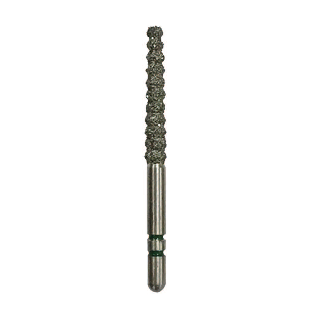 Grov (grøn ring). Taper-skiver, kroneskærer, ISO 521/018. Two Striper diamantbor er med god grund Verdens mest solgte diamantbor. 3-4 gange længere holdbarhed i.f.t. konventionelle diamantbor Skærer hurtigere ! Bedre end-cutting Diamantkrystaller er jævnt fordelt Prøv dem! Two Striper diamantbor til airrotor, FG, ligger i pakninger med 5 stk.