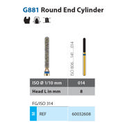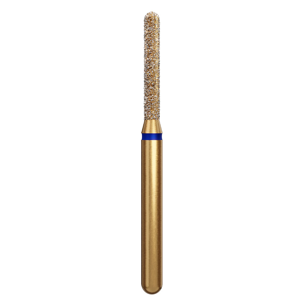 Diamantbor til præparation, cylindrisk med afrundet top, til FG, medium med blå ring, 881/014 ML, hovedlængde 8 mm.