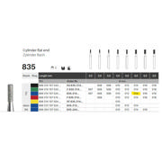 Diamantbor med flere diamantlag i den skærende del, så boret er mere holdbart, effektivt og stabilt. Med "Multilayer Diamond Instrument Guarantee" som er producentens garanti for et bor med en god skære-evne over længere tid. Til præparation, til FG, cylinderformet med flad top, medium med blå ring, hovedlængde 4 mm, 108/014 M (835).