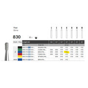 Diamantbor med flere diamantlag i den skærende del, så boret er mere holdbart, effektivt og stabilt. Med "Multilayer Diamond Instrument Guarantee" som er producentens garanti for et bor med en god skære-evne over længere tid. Til præparation, til FG, pæreformet, medium med blå ring, hovedlængde 2,7 mm, 233/012 M (830).