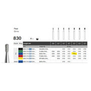 Diamantbor med flere diamantlag i den skærende del, så boret er mere holdbart, effektivt og stabilt. Med "Multilayer Diamond Instrument Guarantee" som er producentens garanti for et bor med en god skære-evne over længere tid. Til præparation, til FG, pæreformet, medium med blå ring, hovedlængde 2,7 mm, 233/014 M (830).