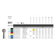 Diamantbor med flere diamantlag i den skærende del, så boret er mere holdbart, effektivt og stabilt. Med "Multilayer Diamond Instrument Guarantee" som er producentens garanti for et bor med en god skære-evne over længere tid. Til præparation, til FG, rund, grov med grøn ring, hovedlængde 0,8 mm, 001/008 C (801).