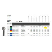 Diamantbor med flere diamantlag i den skærende del, så boret er mere holdbart, effektivt og stabilt. Med "Multilayer Diamond Instrument Guarantee" som er producentens garanti for et bor med en god skære-evne over længere tid. Til præparation, til FG, rund, grov med grøn ring, hovedlængde 1,6 mm, 001/016 C (801).