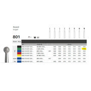 Diamantbor med flere diamantlag i den skærende del, så boret er mere holdbart, effektivt og stabilt. Med "Multilayer Diamond Instrument Guarantee" som er producentens garanti for et bor med en god skære-evne over længere tid. Til præparation, til FG, rund, grov med grøn ring, hovedlængde 1,8 mm, 001/018 C (801).