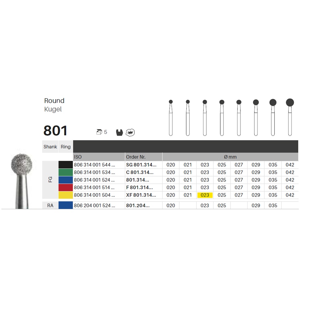 Diamantbor med flere diamantlag i den skærende del, så boret er mere holdbart, effektivt og stabilt. Med "Multilayer Diamond Instrument Guarantee" som er producentens garanti for et bor med en god skære-evne over længere tid. Til pudsning, til FG, rund, ekstra-fin med gul ring, hovedlængde 2,3 mm, 001/023 XF (801).