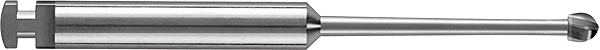 Rosenbor i hårdmetal med ekstra lang, slank hals, til lokalisering af rodkanalindgange og frilægning af knækket stift, RA. Str.006. Samlet længde 28 mm.