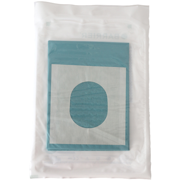 Sterilt hulstykke med klæb til afdækning, 50 x 60 cm, hulstørrelse ovalt 6 x 8 cm.