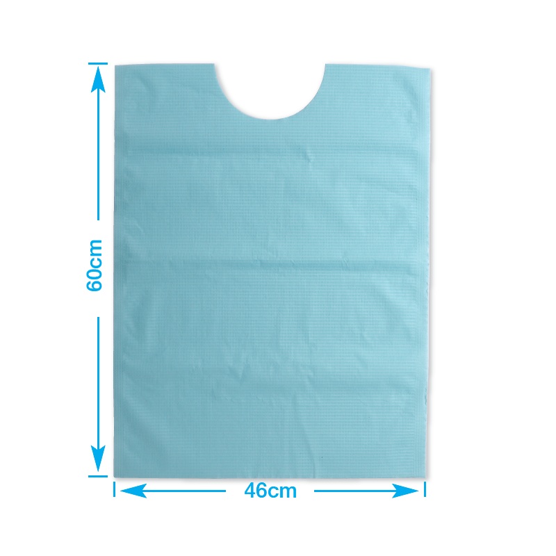 Store patientservietter 60x45 cm, papir/plast 3 lags med halsudskæring. Lyseblå