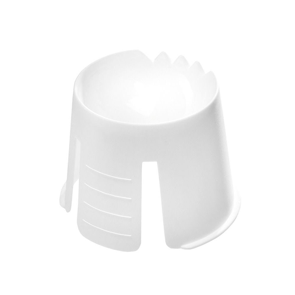Dappenbægre, hvid farve, polypropylen plast, med takket kant og flige til fastsætning på bakkens kant.