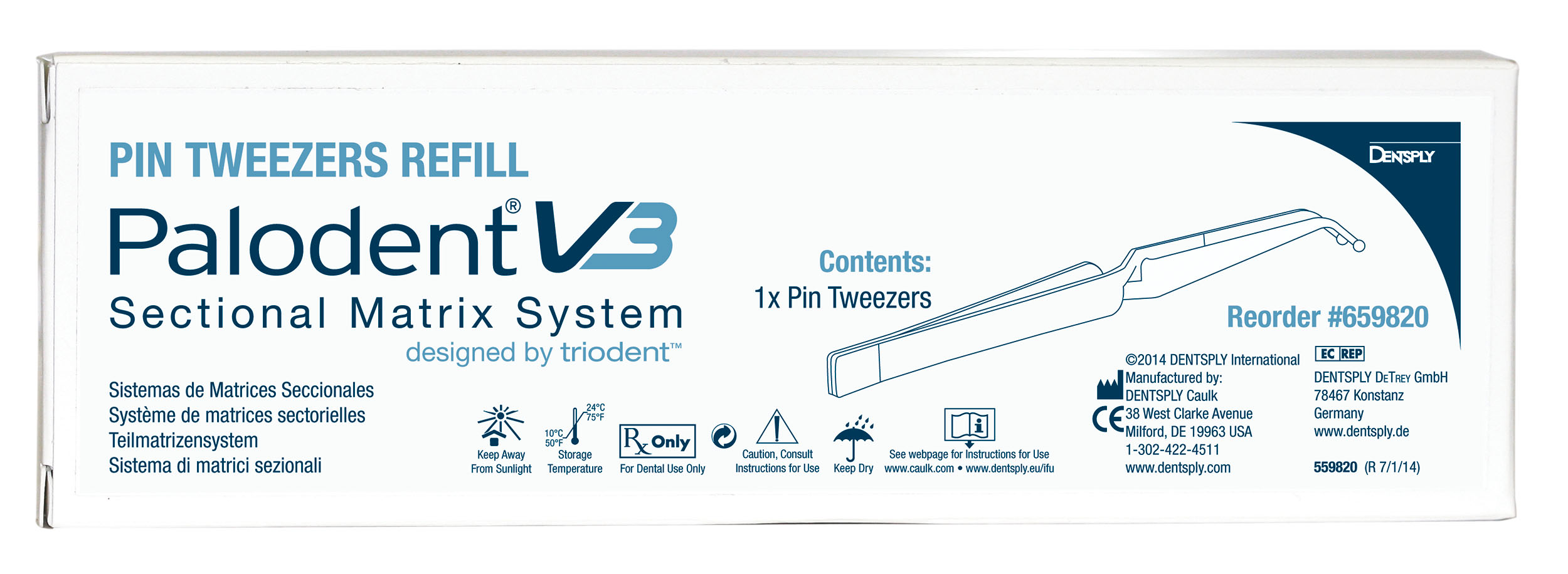 Pincet med en spids som passer til hul i matrice/kile og sikrer god kontrol. Med kuglestopper i pincettens spids. Med naturlig lukket position.