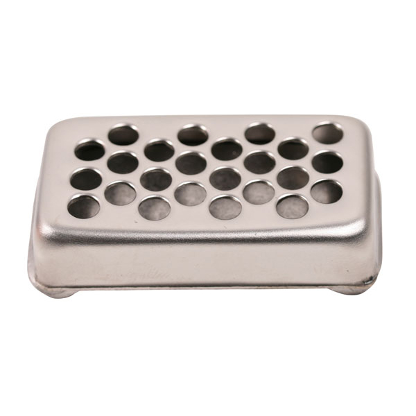 Metal beholder til vatpellets med huller, måler 48 x 25 x 10 mm