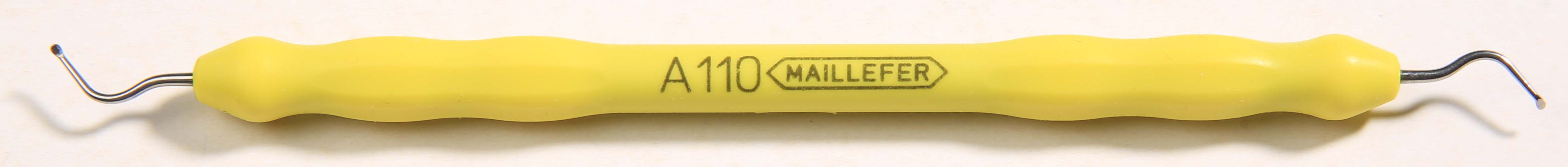 Dobbeltendet rustfrit stål excavator ISO 110 med kort skaft. Med gul silikonegreb.