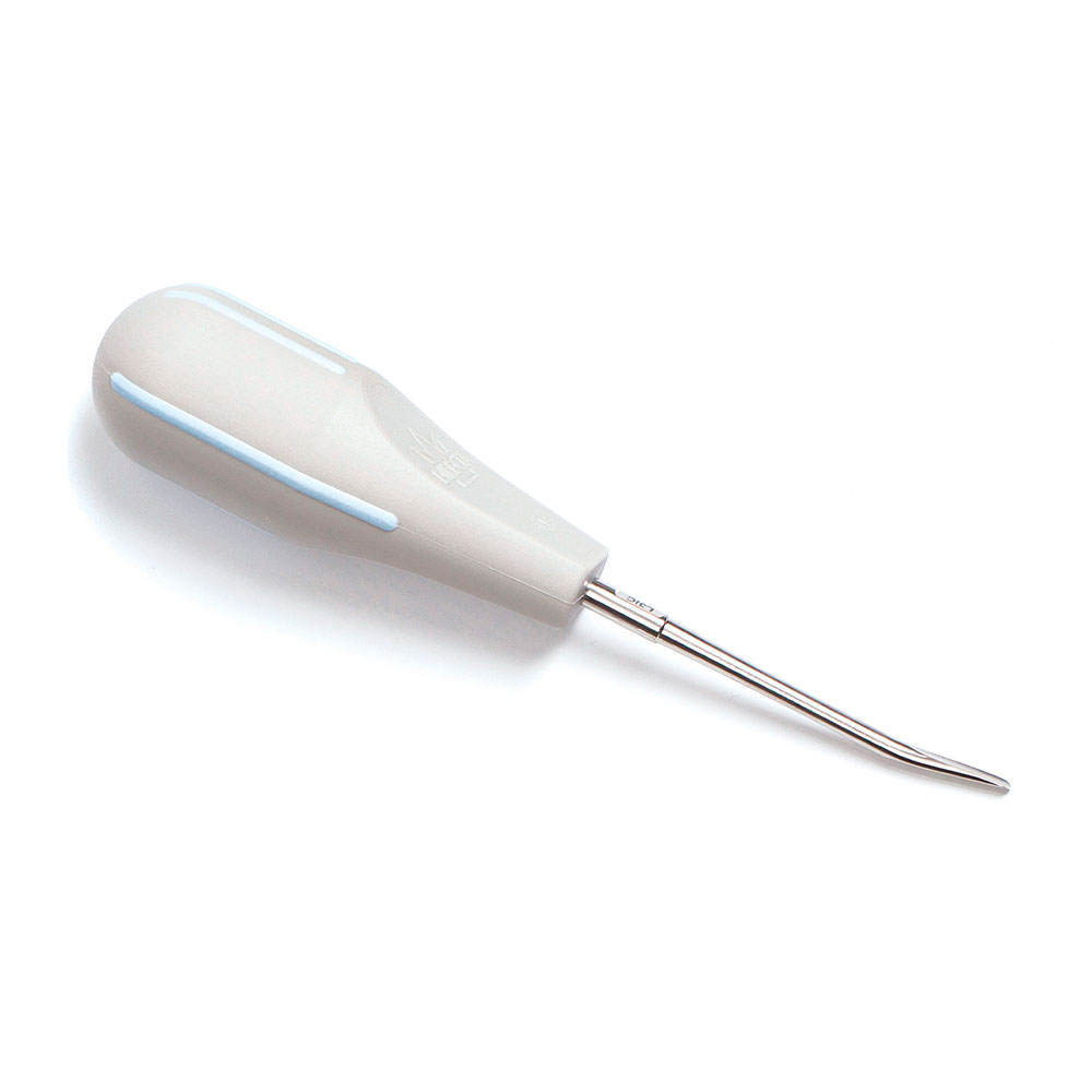 Bemærk: Foto viser hele serien. Dette varenummer er kun 1 fra serien. Luxator, gracilt instrument, der anvendes til at løsne rodhindefibrene, må ikke anvendes som elevator. L-3IC, omvendt buet, lysegrå/lyseblå, 3 mm.