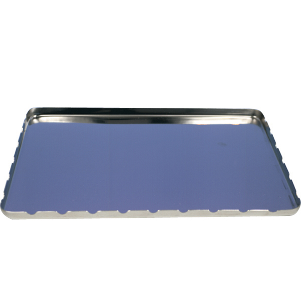 Stålbakke med brudt kant, takker på 3 sider, 182 x 284 x 11 mm.