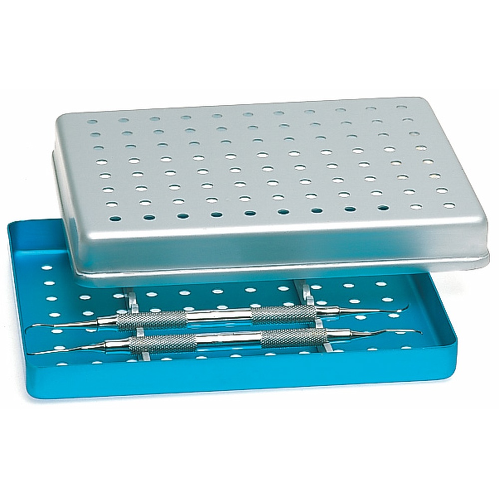 Låg til aluminiumsbakke, perforeret til halve bakker, str. 18 x 14 x 2,5 cm. OBS MÅ IKKE ANVENDES I DENTALOPVASKEMASKINER, DA FARVEN PÅVIRKES AF VISSE OPVASKEMIDLER. Grå.