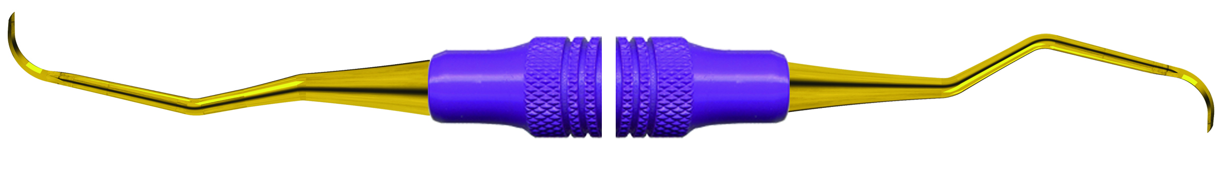 Curette, Dobbel Gracey Anterior til fortænder med lilla greb og guldfarvede ender. OBS: Må ikke slibes. AEDGAXPX