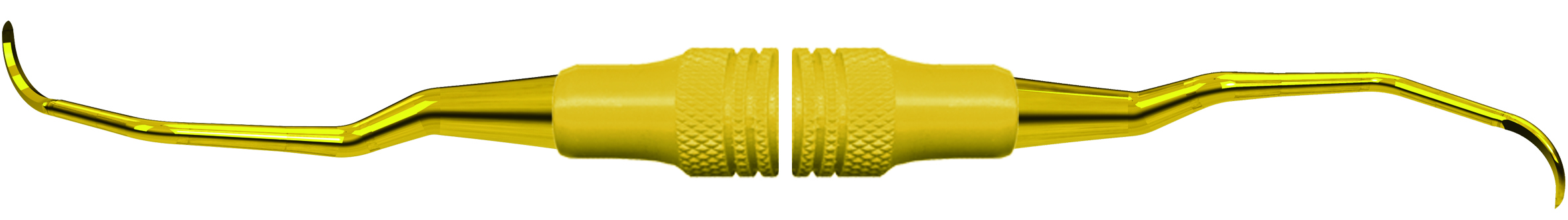Curette, Dobbel Gracey Posterior til kindtænder med gul greb og guldfarvede ender. OBS: Må ikke slibes. AEDGPXPX