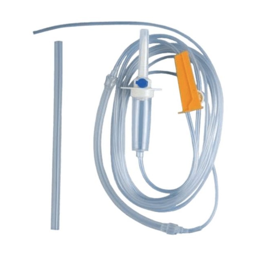 Slangesæt til skyllevæske til kirurgi motorer. Indeholder køle- og skylleslange med luer-lock forbindelse, perforator til steril væskepose og on/off luftfilter for øget salin-flow, flowregulator ("roulette") til justering og lukning af væskestrømmen, silikonerør til peristaltisk pumpe, tilpasset hver type motor og fæstningsudstyr: S-kroge til ledningshåndtering, kroge ved kraftig ledning, Y‑connector til valg af vej. Sterilt enkeltpakkede.