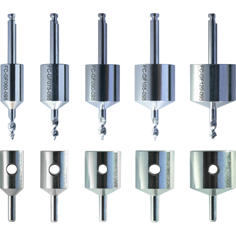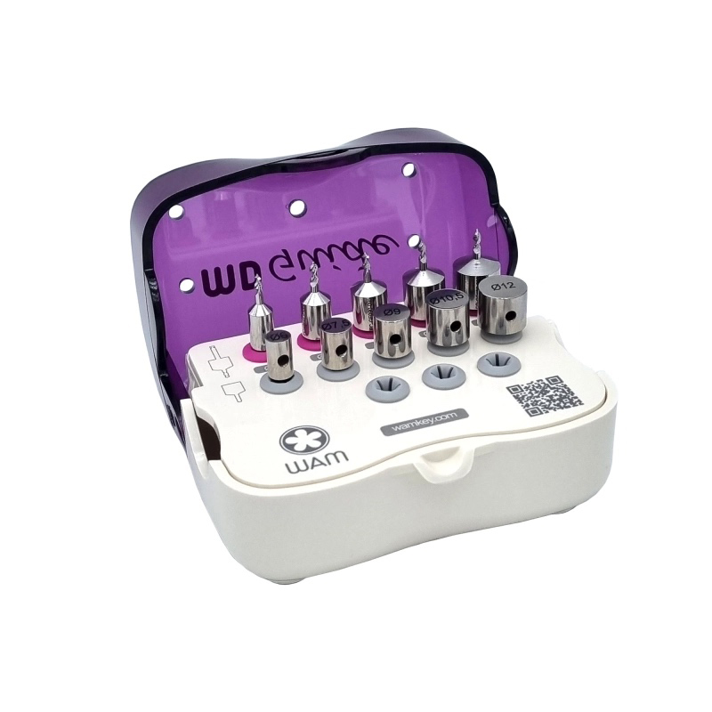 Wam MD Guide - En bore guide der giver dig en mesio-distal vejledning, når du skal placere implantater. Én millimeter kan gøre en stor forskel. Hver af de 5 bor har en cylinder. Diameteren på denne cylinder matcher den mesio-distale dimension af den tand, du skal udskifte. De ikke-borende guider vil give dig mulighed for at simulere tilstedeværelsen af de fremtidige protetiske tænder, når du placerer flere implantater.