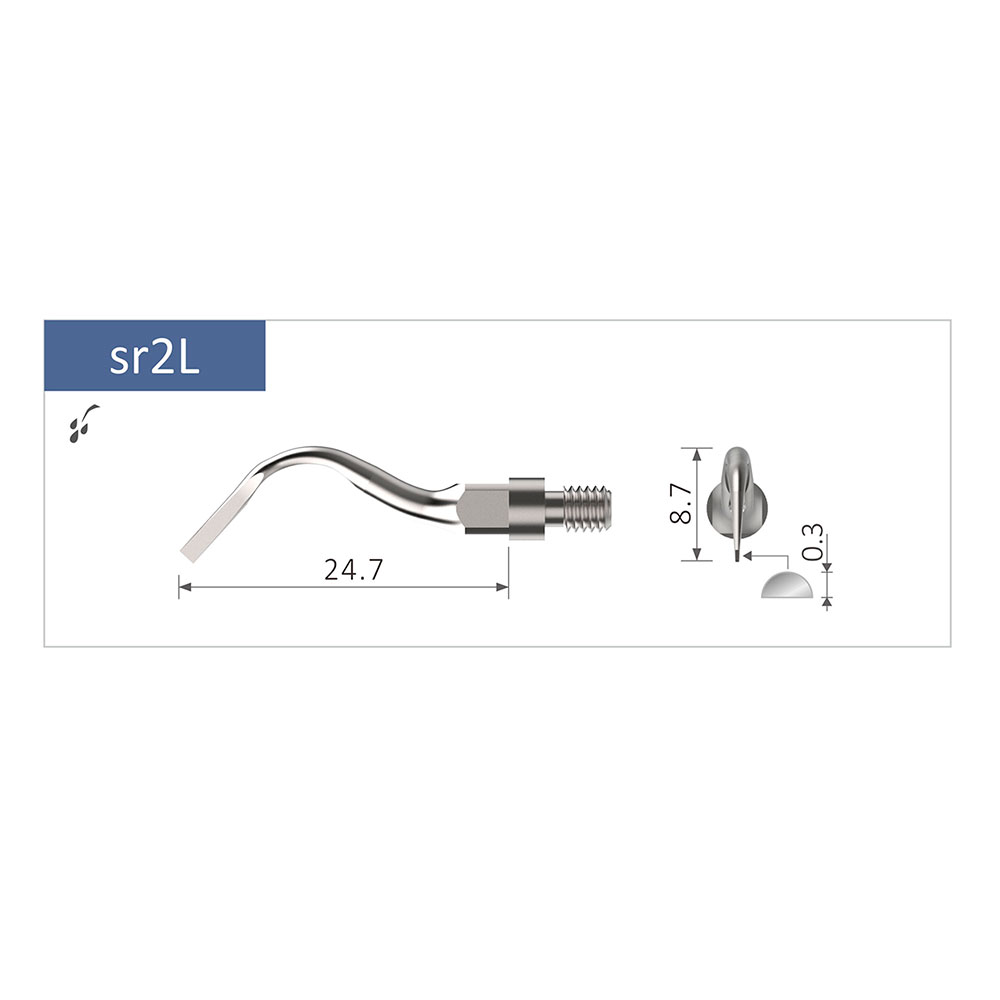 Spids til Sirona airscaler, sr2L Versatile, bruges lingualt, buccalt og approcimalt, længde på spids 24,7 mm.