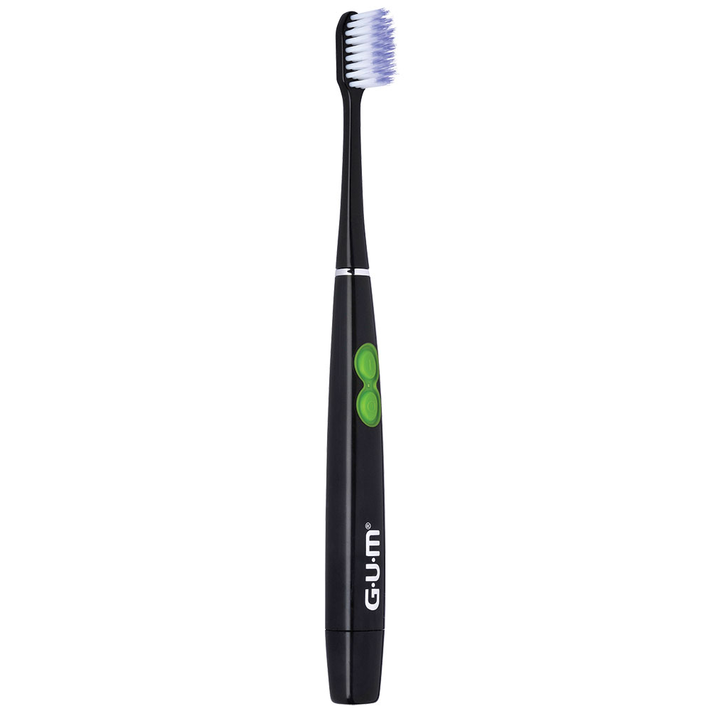 GUM Sonic Daily batteritandbørste. Anvendes som en almindelig manuel tandbørste. Den har soniske vibrationer der blidt renser tænderne og stimulerer tandkødet. Leveres med rejse etui til børstehovedet og 3 farvemarkeringsringe. Bruger AAA batteri