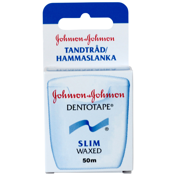Tandtråd tynd og flad, vokset, uden fluor og uden smag. Indeholder IKKE fluorstofferne PTFE eller Teflon. (Ændret navn Tidligere Johnson & Johnson)