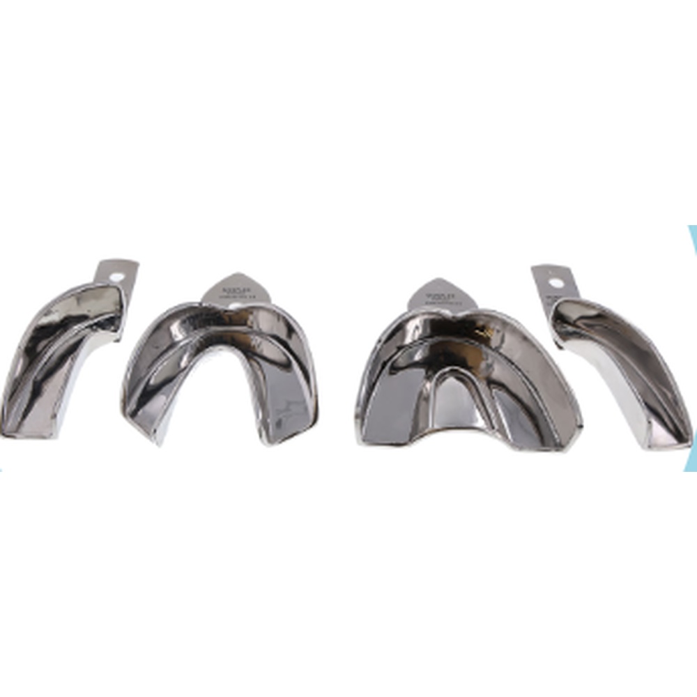 Autoklaverbar aftryksske i korrosionsbestandigt, rustfrit stål, med retentionskant, der holder aftryksmaterialet på plads i skeen. Uperforeret, partiel venstre.