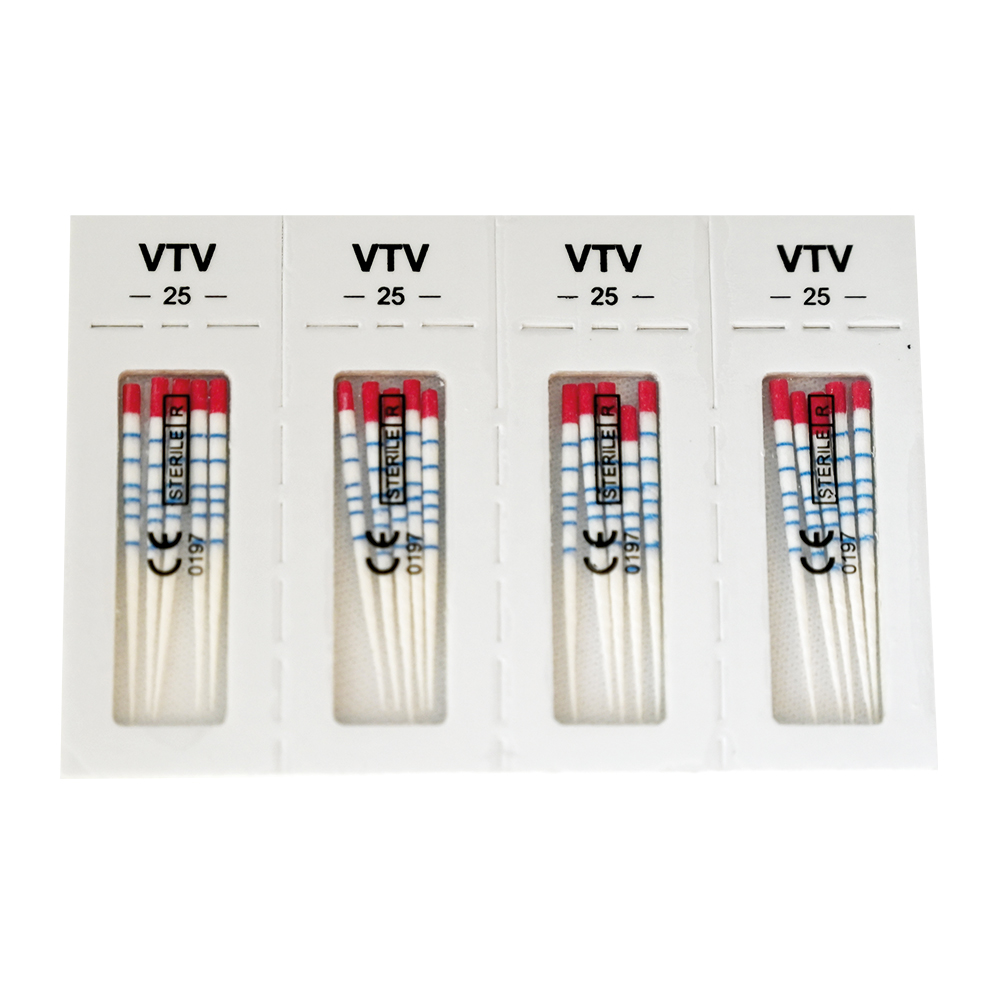 Paperpoints til Recipfile V & V Blue, 29 mm, R25 rød (25/.08). Sterilt cellepakket med 5 stk i hver celle.