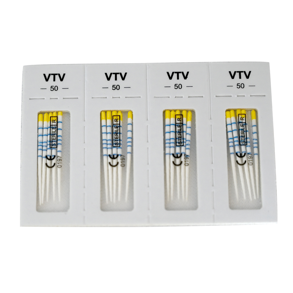 Paperpoints til Recipfile V & V Blue, 29 mm, R50 gul (50/.05). Sterilt cellepakket med 5 stk i hver celle.