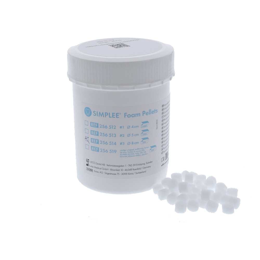 Skumpellets i polyester skum, nr. 3, runde, diameter 8 mm, til applicering af syregel, primer, bond og lignende, til engangsbrug, kan autoklaveres.