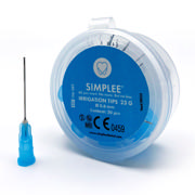 Stumpe luer skyllekanyler med større åbning af den yderste del af kanylen for sikrere skylning, blå, 23G, 0,6 mm.