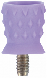 Regular med skrue. Små lilla gummikopper med riller på yderside, latexfri.